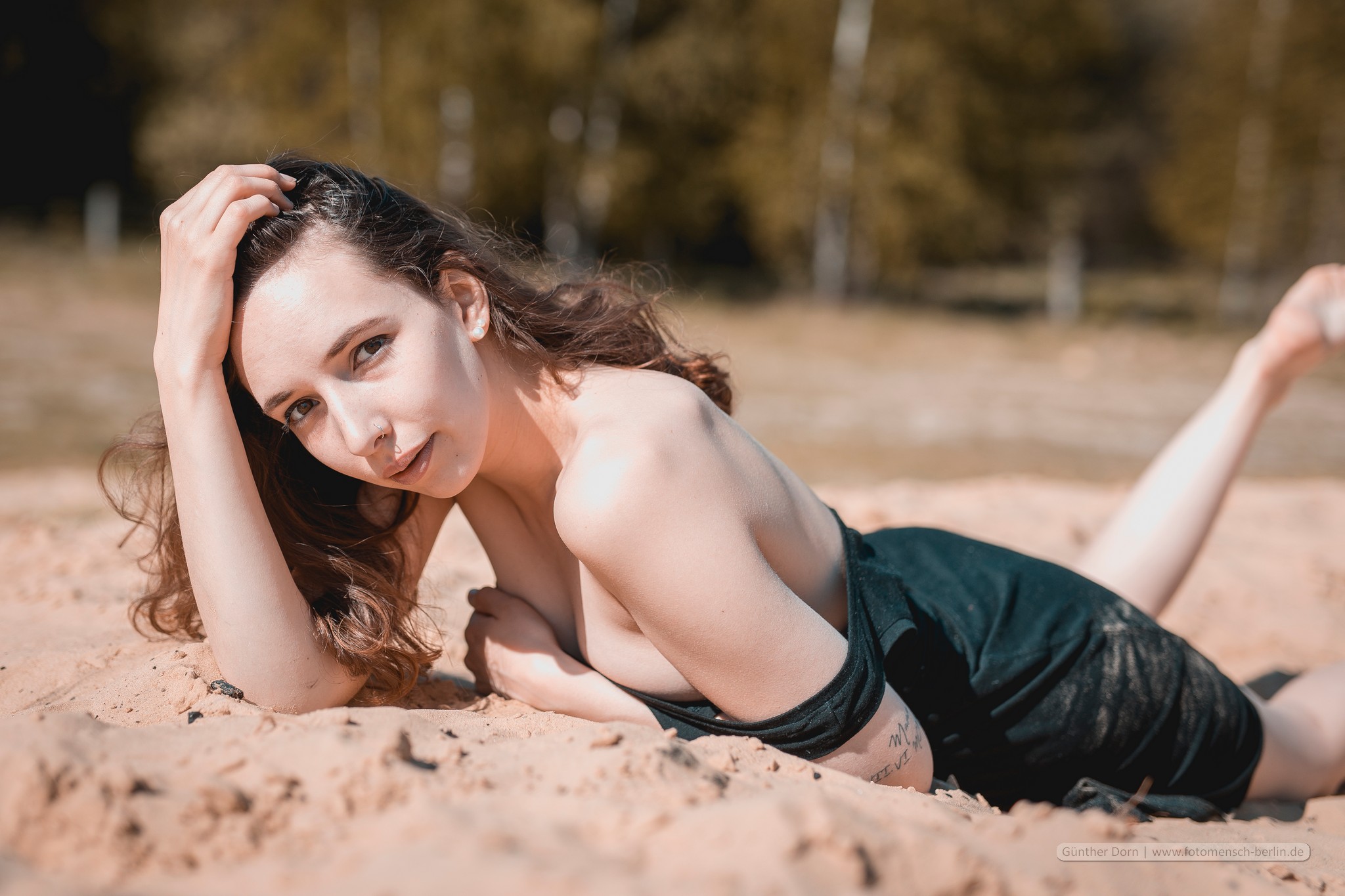 Lili liegt nackt im Sand